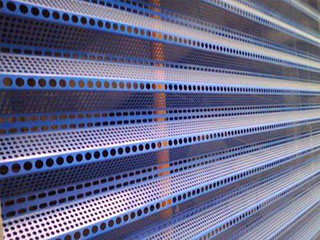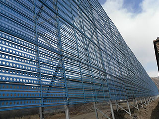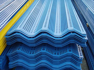 防风抑尘网特点: 1、抗紫外线(耐老化):产品表面经过喷塑处理,能吸收太阳光中的紫外线,降低了材料本身氧化速度,使产品具有较好的防老化性能,使用寿命提高。同时紫外线透过度低,避免了太阳光中料的损伤。 2、阻燃性 因为是金属板所以有很好的阻燃性,均能满足消防和安全生产的要求。 3、抗冲击:产品的强度高,可以承受冰雹(强风)的冲击。冲击强度试验检测,在试样的中上方,用质量为1kg的钢球,距波峰顶点1.5米的高度自由落下,产品没有断裂和贯穿的孔穴。 4、防静电:产品表面经过静电喷塑处理,在受太阳光照射后,能把附着于产品表面的有机污物氧化分解,另外,其超亲水性使尘土易于被雨水冲洗,起到自洁净效果,无维护费用。 防风抑尘网一般分为五大系列: (1)用普通冷轧钢板做为基础材料,板材厚度0.5mm-1.5mm,由数控设备进行冲孔,成型,再进行双面高压静电粉末喷涂的表面抗腐蚀处理。 (2)用镀锌钢板做为基础材料,板材厚度0.5mm-1.5mm,由数控设备进行冲孔,成型,再进行双面高压静电粉末喷涂的表面抗腐蚀处理。 (3)用彩涂钢板做为基础材料,板材厚度0.5mm-1.5mm,由数控设备进行冲孔,成型。不需要进行表面处理。 (4)用镀铝锌钢板做为基础材料,板材厚度0.5mm-1.5mm,由数控设备进行冲孔,成型。不需要进行表面处理。 (5)用不锈钢板材做为基础材料,板材厚度0.5mm-1.5mm,由数控设备进行冲孔,成型,不需要进行表面处理。