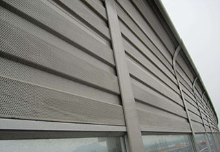 室外的声屏障一般采用砖或混凝土结构,室内的声屏障引用钢板、木板、PMMA/POLYCARBONATE SHEET塑料扳、石膏板和泡沫铝等结构。声屏障主要由钢结构立柱和吸隔声屏板两部分组成,立柱是声屏障的主要受力构件,它通过螺栓或焊接固定在道路防撞墙或轨道边的预埋钢板上;吸隔声板是主要的隔声吸声构件,它通过高强弹簧卡子将其固定在H型立柱槽内,形成声屏障。声屏障的设计已较为充分地考虑了高架高速道路、城市轻轨、地铁的风载、交通车辆的撞击安全和全天候的露天防腐问题。它外形美观大方,制作精致,运输、安装方便,造价低,使用寿命长,特别适用于高架高速道路和城市轻轨、地铁的防噪声使用,是现代化城市理想的隔声降噪设施。